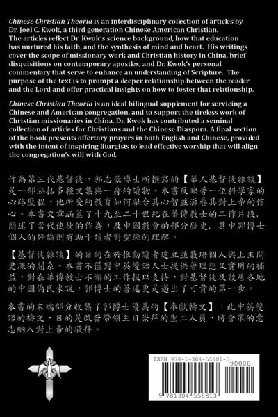 Chinese Christian Theoria is an interdisciplinary collection of articles by Dr. Joel C. Kwok, a third generation Chinese American Christian. The articles reflect Dr. Kwok's science background, how that education has nurtured his faith, and the synthesis of mind and heart. His writings cover the scope of missionary work and Christian history in China, brief disquisitions on contemporary apostles, and Dr. Kwok's personal commentary that serve to enhance an understanding of Scripture.