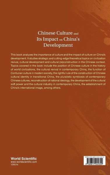 This book analyzes the importance of culture and the impact of culture on China's development. It studies strategic and cutting-edge theoretical topics on civilization revival, cultural development and cultural (re)construction in the Chinese context. Topics covered in the book include the position of Chinese culture in the history of world civilizations, the cultural revival in contemporary China, the function of Confucian culture in modern society, the rightful rule of the construction of Chinese cultural identity in transitional China, the pluralistic symbiosis of contemporary Chinese cultures, reconstruction of national ideology, the development of the cultural soft power and the cultural industry in contemporary China, the establishment of China's international image, among others.