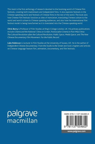 Chris Berry is Professor of Film Studies at King's College London, UK. His primary publications include Cinema and the National: China on Screen; Postsocialist Cinema in Post-Mao China: the Cultural Revolution after the Cultural Revolution; Public Space, Media Space; and The New Chinese Documentary Film Movement: For the Public Record. Luke Robinson is Lecturer in Film Studies at the University of Sussex, UK. He is the author of Independent Chinese Documentary: From the Studio to the Street, and book chapters and articles on Chinese-language feature film, animation, documentary, and film festivals.