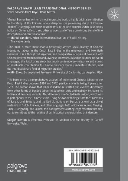 This book offers a comprehensive account of indentured Chinese labour in the Dutch East Indies between 1880 and 1942, particularly in its twilight years after 1917. The author shows that Chinese indenture started and evolved differently from other forms of bonded labour in Southeast Asia and globally, including its Indian and Javanese variants. This difference is reflected in its lexicon, which was in part special to the Chinese strain. Using fieldwork findings from the tin islands of Bangka and Belitung and the Deli plantations on Sumatra as well as archival materials in Dutch, Chinese, and other languages held in libraries in Java, Nanjing, Taipei, Hong Kong, and Leiden, this book presents cutting-edge research that sets out to contribute to the revising of our historical understanding of indenture.
