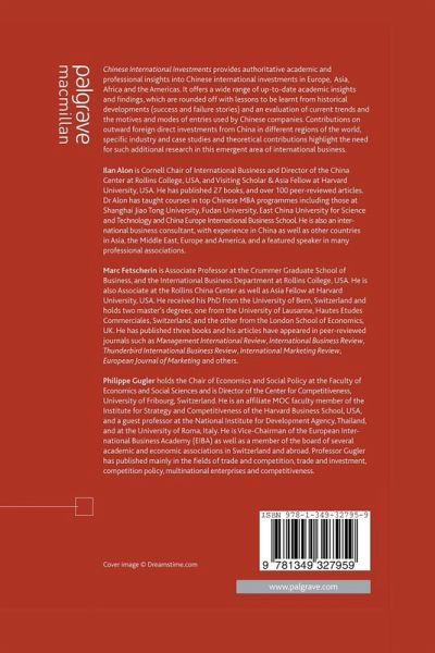List of Tables List of Figures and Graphs Foreword by Peter Buckley Acknowledgments Notes on Contributors Introduction Ilan Alon, Marc Fetscherin, and Philippe Gugler Part 1: Macro-Environmental Determinants of Chinese Foreign Direct Investment Chapter 1: An Institutional Perspective and the Role of the State for Chinese OFDI Bing Ren, Hao Liang, and Ying Zheng Chapter 2: Home Country Macroeconomic Determinants of Chinese OFDI William Wei, Ilan Alon, and Liqiang Ni Chapter 3: The Role of Country of Origin and Chinese OFDI Paz Estrella Tolentino Chapter 4: Chinese SWFs : At the Crossroad between the Visible and the Invisible Hand Philippe Gugler, Michael Keller, and Laura Vanoli Part 2: Micro-Environmental Determinants of Chinese Foreign Direct Investment Chapter 5: Motives and Patterns of Reverse FDI by Chinese Manufacturing Firms Xiaobo Wu, Wanling Ding, and Yongjiang Shi Chapter 6: A Two-way Causal Link between Internationalization and CEO Equity Ownership in Chinese Firms Xiaohui Liu and Jiangyong Lu Chapter 7: Effects of Absorptive Capacity on International Acquisitions of Chinese Firms Ping Deng Part 3: Chinese FDI in Europe and North America Chapter 8: Push and Pull Factors for Chinese OFDI in Europe Yun Schüler-Zhou, Margot Schüller, and Magnus Brod Chapter 9: The rise of Chinese outward FDI in Europe Jan Knoerich Chapter 10: Chinese M&A in Germany Yipeng Liu and Michael Woywode Chapter 11: Chinese Migration in Europe Anja Michaela Fladrich Chapter 12: Chinese State-Controlled Funds and Entities in Canada Xiaohua Lin and Qianyu Chen Part 4: Chinese FDI in the Africa Chapter 13: Chinese OFDI in Africa: Trends, Prospects and Threats Gayle Allard Chapter 14: Chinese OFDI in Sub-Saharan Africa Raphael Kaplinsky and Mike Morris Part 5: Cases of Chinese Foreign Direct Investment Chapter 15: The Case of Florida Splendid China Wenxian Zhang Chapter 16: Benelli and QJ Compete in the International Motorbike Arena Francesca Spigarelli, William Wei, and Ilan AlonChapter 17: Geely's Internationalization and Volvo's Acquisition Philippe Gugler and Marc Fetscherin Final Reflections Ilan Alon, Marc Fetscherin, and Philippe Gugler