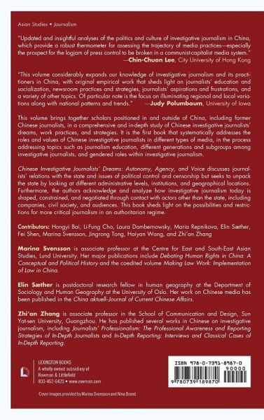 Marina Svensson is associate professor at the Centre for East and South-East Asian Studies, Lund University. Her major publications include the monograph Debating Human Rights in China: A Conceptual and Political History and the co-edited volume Making Law Work: Implementation of Lawin China. Elin Sæther is postdoctoral research fellow in human geography at the Department of Sociology and Human Geography at the University of Oslo. Her work on Chinese media has been published in the China aktuell-Journal of Current Chinese Affairs. Zhi'an Zhang is associate professor in the School of Communication and Design, Sun Yat-sen University, Guangzhou. He has published several works in Chinese on investigative journalism, including Journalists' Professionalism: The Professional Awareness and Reporting Strategies of In- Depth Journalists and In-Depth Reporting: Interviews and Classical Cases of In-Depth Reporting.