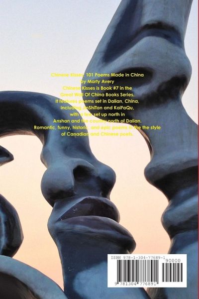 Chinese Kisses: 101 Poems Made in China, by Marty Avery, is a collection of poems inspired by Chinese and Canadian poets, set in Dalian, China, including JinShiTan and KaiFaQu, in 2013, capturing first impressions that will be lasting impressions.
