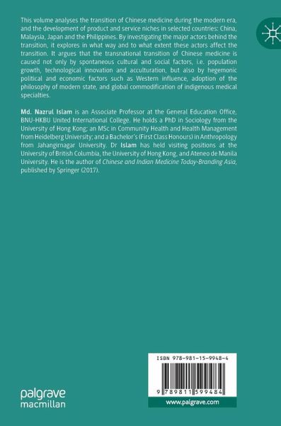 This volume analyses the transition of Chinese medicine during the modern era, and the development of product and service niches in selected countries: China, Malaysia, Japan and the Philippines. By investigating the major actors behind the transition, it explores in what way and to what extent these actors affect the transition. It argues that the transnational transition of Chinese medicine is caused not only by spontaneous cultural and social factors, i.e. population growth, technological innovation and acculturation, but also by hegemonic political and economic factors such as Western influence, adoption of the philosophy of modern state, and global commodification of indigenous medical specialties.