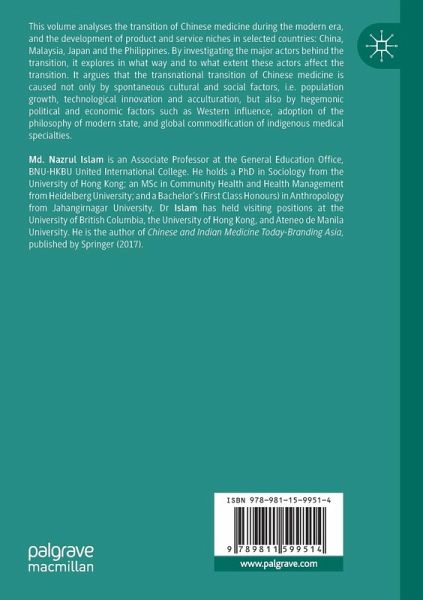 This volume analyses the transition of Chinese medicine during the modern era, and the development of product and service niches in selected countries: China, Malaysia, Japan and the Philippines. By investigating the major actors behind the transition, it explores in what way and to what extent these actors affect the transition. It argues that the transnational transition of Chinese medicine is caused not only by spontaneous cultural and social factors, i.e. population growth, technological innovation and acculturation, but also by hegemonic political and economic factors such as Western influence, adoption of the philosophy of modern state, and global commodification of indigenous medical specialties.