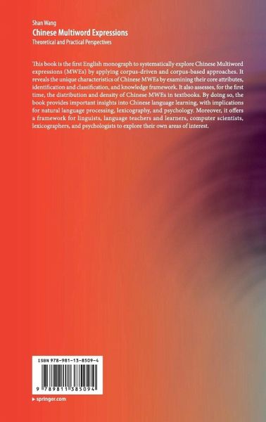 This book is the first English monograph to systematically explore Chinese Multiword expressions (MWEs) by applying corpus-driven and corpus-based approaches. It reveals the unique characteristics of Chinese MWEs by examining their core attributes, identification and classification, and knowledge framework. It also assesses, for the first time, the distribution and density of Chinese MWEs in textbooks. By doing so, the book provides important insights into Chinese language learning, with implications for natural language processing, lexicography, and psychology. Moreover, it offers a framework for linguists, language teachers and learners, computer scientists, lexicographers, and psychologists to explore their own areas of interest.