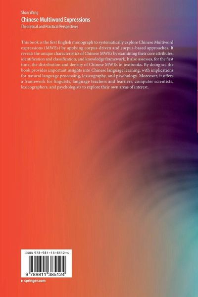 This book is the first English monograph to systematically explore Chinese Multiword expressions (MWEs) by applying corpus-driven and corpus-based approaches. It reveals the unique characteristics of Chinese MWEs by examining their core attributes, identification and classification, and knowledge framework. It also assesses, for the first time, the distribution and density of Chinese MWEs in textbooks. By doing so, the book provides important insights into Chinese language learning, with implications for natural language processing, lexicography, and psychology. Moreover, it offers a framework for linguists, language teachers and learners, computer scientists, lexicographers, and psychologists to explore their own areas of interest.