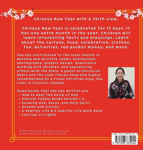 Chinese New Year with a faith view. Chinese New Year is celebrated for 15 days. It has one extra month in the year. Children will learn interesting facts and blessings. Learn about the culture, food, celebration, clothes, fun, activities, red pocket money, and more. There are certain traditional foods that are eaten to celebrate the new year. Children will learn what they mean. The Chinese have one extra month in the year on the lunar calendar. Find out more about the lunar calendar. Chinese also celebrate the spring and mid-autumn festivals. They also dress in their Chinese clothing and eat special food and dessert then like mooncake.