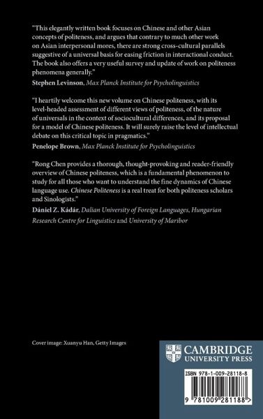 Proposing a coherent account of Chinese politeness and comparing it with politeness of several linguacultures, this book demonstrates the need of a universal theory of politeness. This title is part of the Flip it Open Programme and may also be available Open Access. Check our website Cambridge Core for details.
