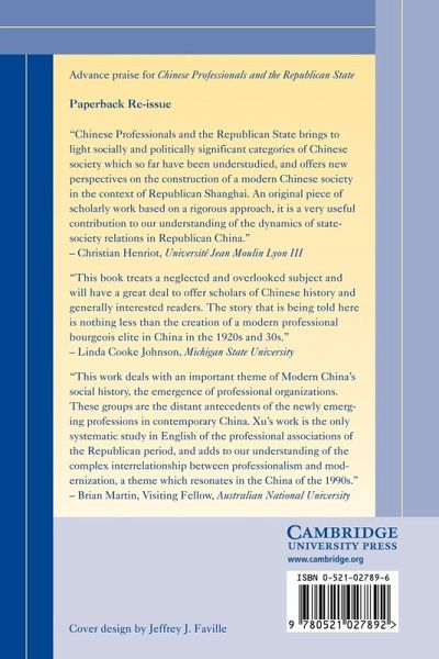 List of tables Acknowledgments Abbreviations of frequently cited sources Introduction Part I. Professions and Professionals: 1. Professions in early-twentieth-century Shanghai 2. Professionals as urban middle class Conclusion to part I Part II. Social Institutions, State Actions, and Professionalization: 3. The Republican State and urban associations 4. The Republican State and the legal profession 5. The Republican State and the medical profession Conclusion to part II Part III. Professionalism, Nationalism, and Politics: 6. From 'literary men' to professionals: Shanghai journalists 7. National essence versus science: the medical profession in conflict 8. Professionalism and nationalism: the Shanghai Bar Association (I) 9. Professionalism and politics: the Shanghai Bar Association (II) Conclusion to part III Conclusion Glossary Bibliography Index.