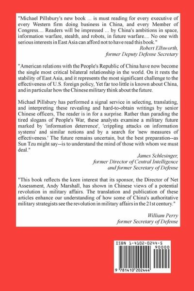 "Michael Pillsbury's new book ... is must reading for every executive of every Western firm doing business in China, and every Member of Congress.... Readers will be impressed ... by China's ambitions in space, information warfare, stealth, and robots, in future warfare.... No one with serious interests in East Asia can afford not to have read this book." Robert Ellsworth, former Deputy Defense Secretary "American relations with the People's Republic of China have now become the single most critical bilateral relationship in the world. On it rests the stability of East Asia, and it represents the most significant challenge to the effectiveness of U.S. foreign policy, Yet far too little is known about China, and in particular how the Chinese military think about the future. Michael Pillsbury has performed a signal service in selecting, translating, and interpreting these revealing and hard-to-obtain writings by senior Chinese officers, The reader is in for a surprise. Rather than parading the tired slogans of People's War, these analysts examine a military future marked by 'information deterrence', 'crippling attacks on information systems' and similar notions and by a search for 'new measures of effectiveness.' The future remains uncertain, but the best preparation-- as Sun Tzu might say-- is to understand the mind of those with whom we must deal." James Schlesinger, former Director of Central Intelligence and former Secretary of Defense "This book reflects the keen interest that its sponsor, the Director of Net Assessment, Andy Marshall, has shown in Chinese views of a potential revolution in military affairs. The translation and publication of these articles enhance our understanding of how some of China's authoritative military strategists see the revolution in military affairs in the 21st century." William Perry former Secretary of Defense