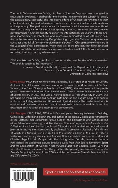 The book Chinese Women Striving for Status: Sport as Empowerment is original in focus and in evidence. It analyses for the first time, in informed and substantial detail, the extraordinary, successful and impressive efforts of Chinese sportswomen in their collective striving for, and achieving of, national and international recognition, status and supremacy. The performances and achievements of these women have thrust them to the very center of the global spotlight. Among the most dramatic, recent developments in Chinese society has been the international ascendancy of these Chinese sportswomen: an intentional and impressive demonstration of soft power politics.