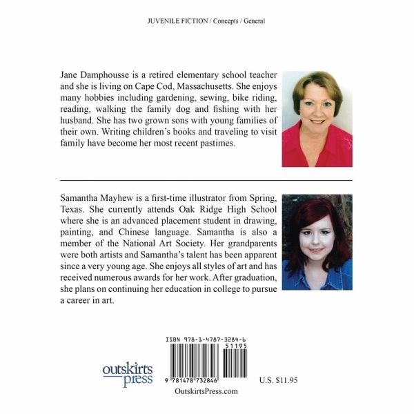 Jane Damphousse is a retired elementary school teacher and she is living on Cape Cod, Massachusetts. She enjoys many hobbies including gardening, sewing, bike riding, reading, walking the family dog and fishing with her husband. She has two grown sons with young families of their own. Writing children's books and traveling to visit family have become her most recent pastimes.