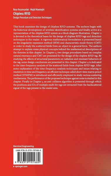 This book examines the design of chipless RFID systems. The authors begin with the philosophy of RFID and its effect on commercial applications. Then, they discuss the chipless RFID systems and the application of chipless RFID systems, the advantages it provides compared to conventional barcode ID and chipped RFID tags. The text then covers chipless RFID components in block diagram representation and introduce FCC requirements which should be considered in the design procedure of each component. The third chapter is dedicated to the complex natural resonance-based design of chipless RFID tags. The next chapter concerns about the detection techniques introduced for the identification of chipless RFID tags. The fifth chapter is dedicated to the localization and anti-collision techniques in chipless RFID systems. Final chapter is chipless RFID tags as sensors. It provides some applications where the tag can be used as both ID and sensor. The tag specifications and detection issues are addressed in this section.