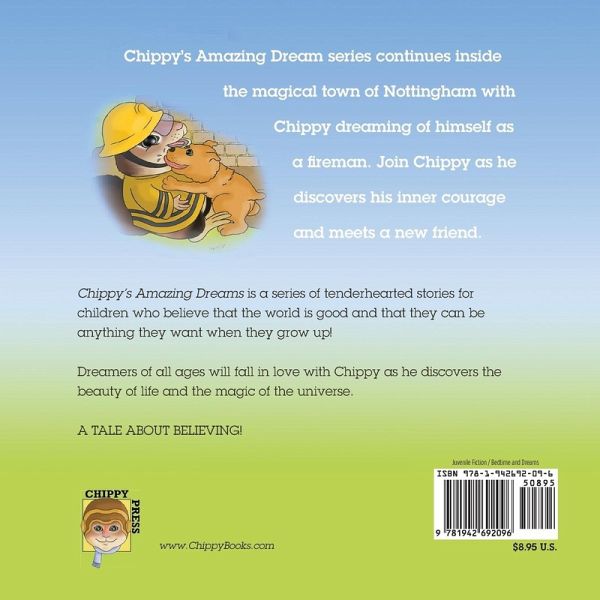 Book 2 of Chippy's Amazing Dream series continues inside the magical town of Nottingham with Chippy dreaming of himself as a fireman. Join Chippy as he discovers his inner courage and makes a new friend. Chippy's Amazing dreams is a series of tenderhearted stories for children who believe the world is good and that they can be anything that they want when they grow up. Dreamers of all ages will fall in love with Chippy as he discovers the beauty of life and the magic of the universe. A TALE ABOUT BELIEVING