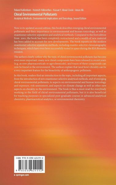 Now in its updated second edition, this book describes emerging chiral environmental pollutants and their importance in environmental and human toxicology, as well as enantiomer selective separation and analytical methods. Compared to the first edition from 2001, the book has been completely restructured and a wealth of new material has been added to account for new developments. The book reports on the modern enantiomer selective separation methods, including enantio-selective chromatography techniques, which have even been successfully tested in space during the ESA Rossetta mission. The authors clearly outline why the topic of chiral environmental pollutants has become even more important: many new chiral compounds have been released in recent years (e.g. as new pharmaceuticals or agrochemicals), and traces of these compounds can now be found in the environment. The authors explain that (and how) chirality can be a very important feature for the bioactivityof anthropogenic pollutants. In this book, readers find an introduction to the topic, including all important aspects, from the introduction of new enantiomer selective analytical methods, and of emerging chiral environmental pollutants, to aspects on environmental and human toxicology and exposure, risk assessment, and aspects on climate change as well as other new aspects on chirality in the environment. The book is thus a must-read for everybody working in the field of chiral environmental pollutants, but it is also beneficial for teaching purposes in specialized post-graduate courses in advanced analytical chemistry, pharmaceutical analytics, or environmental chemistry.