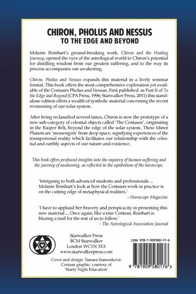 This unique book offers the first comprehensive exploration of the Minor Planets now classified as 'Centaurs'. It was first published in 1996 (in Part II of 'Saturn, Chiron and the Centaurs'), and is still unsurpassed. This stand-alone version includes extra material on the naming of Nessus, and all technical information has been updated. If you resonate with the astrology of Chiron, this material is sure to interest you, as the themes of the Centaurs represent a vital extension of its meaning in the horoscope. Melanie Reinhart's ground-breaking work, "Chiron and the Healing Journey", opened the eyes of the astrological world to Chiron's potential for distilling wisdom from our greatest suffering, and to the way its process accompanies our awakening. "Chiron, Pholus and Nessus" expands this material in a lively seminar format. After being reclassified several times, Chiron is now the prototype of a new sub-category of celestial objects called 'The Centaurs', originating in the Kuiper Belt, beyond the edge of the solar system. These Minor Planets are 'messengers' from deep space which signify experiences of the transpersonal reality which facilitates our relationship with the celestial and earthly aspects of our nature and existence.