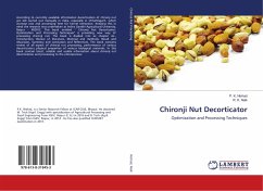 According to currently available information decortication of chironji nut are still carried out manually in India, especially in Chhattisgarh, which increase cost and processing time for kernel extraction. Keeping this in mind the research was undertaken at Indira Gandhi Agricultural University, Raipur - 402012. This book entitled " Chironji Nut Decorticator: Optimization and Processing Techniques" is providing new way of processing chironji nut. The book is divided into six chapter viz., Introduction, Review of literature, Material and methods, Result and discussion, Summary and conclusion and References. The book contains review of all aspect of chironji nut processing, performance of various decorticators, physical properties of various biological materials. In this book contain latest, reliable and usable information about chironji nut decortication and processing to the entrepreneur.