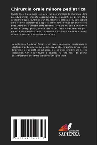 Questo libro è una guida completa che approfondisce le sfumature delle procedure minori, studiate appositamente per i pazienti più giovani. Dalle estrazioni di denti sovrannumerari alle lesioni dei tessuti molli, ogni capitolo offre tecniche approfondite e approcci olistici fondamentali per affrontare le sfide uniche della chirurgia orale pediatrica. Con una miscela di intuizioni di esperti e consigli pratici, questo libro è una risorsa indispensabile per i professionisti dell'odontoiatria che cercano di fornire cure ottimali e comfort ai bambini sottoposti a interventi orali minori.