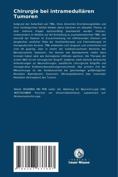 Aufgrund der Seltenheit von TIMs, ihres klinischen Erscheinungsbildes und ihrer histologischen Vielfalt bleiben diese Läsionen ein aktuelles Thema, zu dem mehrere Fragen konsensfähig beantwortet werden müssen, insbesondere im Hinblick auf die Einstellung zu asymptomatischen TIMs, das Ausmaß der Exzision im Zusammenhang mit infiltrierenden Gliomen und dergleichen wirklicher Platz der Strahlentherapie und Chemotherapie im therapeutischen Arsenal. TIMs entwickeln sich langsam und schleichend und sind oft gutartig, aber in einem der funktionsreichsten Bereiche des Nervensystems lokalisiert. Sie können wie Ependymome relativ klare Grenzen haben oder wie Astrozytome infiltrativ wachsen. Die Therapie der ersten Wahl ist ein chirurgischer Eingriff. Letzteres stellt höchste technische Anforderungen an Neurochirurgen; spezifische chirurgische Eingriffe und intraoperative Funktionsüberwachungsinstrumente. Das primäre Ziel der Mikrochirurgie ist der Funktionserhalt bei gleichzeitiger größtmöglicher Resektion (Ependymom, Kavernom, Hämangioblastom) bzw. maximaler Reduktion (Astrozytom) des Tumors.