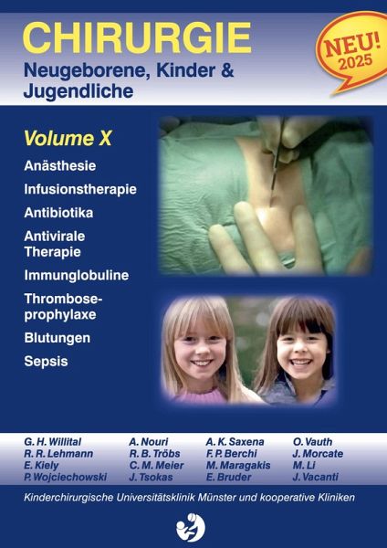 Das Buch Chirurgie, Neugeborene, Kinder und Jugendliche umfasst 11 Kapitel, aufgeteilt nach anatomisch topographischen Gesichtspunkten und Organerkrankungen. Hierbei werden die einzelnen Operationstechniken bei unterschiedlichen Organerkrankungen im Detail beschrieben und durch entsprechende Graphiken und intraoperativen Bildern erklärt. Gleichzeitig werden Hinweise gegeben über intraoperative Schwierigkeiten, topographisch anatomische Veränderungen, Ausnahmeverläufe und Komplikationen. Die Ursachen für diese Verläufe werden im Einzelnen analysiert. Die therapeutischen Notwendigkeiten zur Behandlung dieser Ausnahmeverläufe werden dargelegt. Es wird in diesem Zusammenhang auf das spezielle kinderchirurgische Instrumentarium hingewiesen. Eine Übersicht orientiert über das notwendige Nahtmaterial bei verschiedenen Organoperationen. Ein neuer Bestandteil in diesen Lehrbüchern sind die neuesten diagnostischen Maßnahmen präoperativ, intraoperativ und postoperativ: Laboruntersuchungen (Blutgerinnungsfaktor 13), Ultraschall, Endoskopie, insbesondere die intraoperative Endoskopie und weitere bildgebende Verfahren, Entwicklung und Anwendung von bioabbaubaren Patchimplantationen. Ernährungsrichtlinien und konservative postoperative Maßnahmen werden bei den einzelnen Vol. dargelegt. Für die Studenten und die jungen Operateure sind histologische und histochemische Untersuchungen eine wichtige Hilfe im Hinblick auf das Ausmaß der jeweiligen Resektionstechniken. Im Rahmen der kinderchirurgischen Tumorchirurgie sind sie eine Orientierungshilfe in Bezug auf eine komplette Tumorentfernung und damit Vermeidung von Rezidiv-Operationen, welche durch die neuesten Operationstechniken mit Hilfe des Lasers und des Cusas erreicht werden können. Die Operationstechniken werden schrittweise durch Graphiken und intraoperative Bilder erklärt und dienen hiermit zur Verbesserung der operativen Sicherheit für Patienten und Operateure. Übersichten über mögliche Komplikationen und Ausnahmeverläufe geben eine große Hilfestellung für junge, in Weiterbildung befindlichen Ärzte. Darüber hinaus besteht die Möglichkeit über die IDBEC Datenbank weitere Informationen über Komplikationen, ihre Vermeidung und Therapie zu erhalten. Die Ergebnisse zu den einzelnen Operationen werden im Detail dargelegt. Wichtige Gesichtspunkte sind in der Neugeborenenchirurgie und in der Kinderchirurgie die perioperative Pflege, Ernährung und physiotherapeutische Maßnahmen, auf die im Einzelnen eingegangen werden.