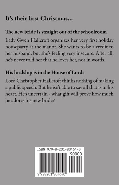It's their first Christmas... The new bride is straight out of the schoolroom. Lady Gwen Hallcroft organizes their holiday houseparty at the manor. She wants to be a credit to her husband, but she's feeling very insecure. After all, he's never told her that he loves her, not in words. His lordship is in the House of Lords. Lord Christopher Hallcroft thinks nothing of making a public speech. But he isn't able to say all that is in his heart. He's uncertain - what gift will prove how much he adores his new bride?