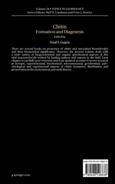 There are several books on properties of chitin and associated biomolecules and their biochemical significance. However, the present volume deals with a wide variety of biogeochemical and organic geochemical aspects of this vital macromolecule written by leading authors and experts in the field. Each chapter is carefully peer reviewed and is an updated account of recent research in isotopic, nanostructural, biochemical, microstructural, geochemical, paleontological and experimental aspects of chitin formation, distribution and preservation in the environment and earth history.