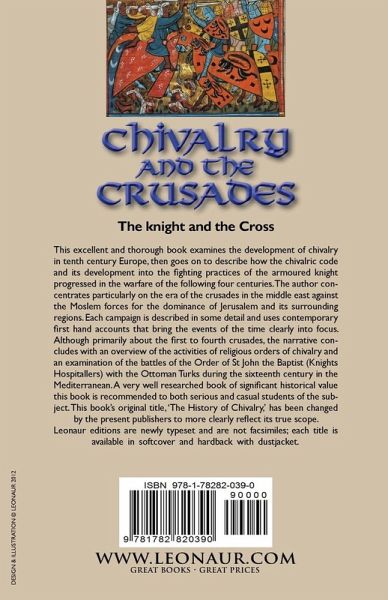 The knight and the Cross This excellent and thorough book examines the development of chivalry in tenth century Europe, then goes on to describe how the chivalric code and its development into the fighting practices of the armoured knight progressed in the warfare of the following four centuries. The author concentrates particularly on the era of the crusades in the middle east against the Moslem forces for the dominance of Jerusalem and its surrounding regions. Each campaign is described in some detail and uses contemporary first hand accounts that bring the events of the time clearly into focus. Although primarily about the first to fourth crusades, the narrative concludes with an overview of the activities of religious orders of chivalry and an examination of the battles of the Order of St John the Baptist (Knights Hospitallers) with the Ottoman Turks during the sixteenth century in the Mediterranean. A very well researched book of significant historical value this book is recommended to both serious and casual students of the subject. This book's original title, 'The History of Chivalry,' has been changed by the present publishers to more clearly reflect its true scope. Leonaur editions are newly typeset and are not facsimiles; each title is available in softcover and hardback with dustjacket.