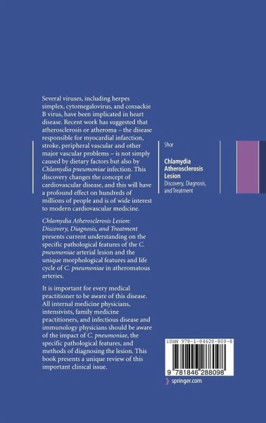 Introduction.- The Germ s Story.- The Deadly Disease.- Atheroma Gruel.- Discovery.- Which Chlamydia Species.- Identification of Atheroma Germ.- Publications, Presentations and Confirmation.- Chlamydia are Inherent Components of Atheroma.- Do Chlamydia Germs Cause Atherosclerosis?- Pathological Lesion Diagnosis.- Study of Atheroma Lesions.- New Findings Concerning Initial Lesion.- Fatty Streak Lesion.- Formation of Fibro-Necrotic Plaque.- Interpretaton of Lesion.- Confirmatory Molecular Biological Studies.- Derivation of Lipid in Lesion.- Acceptance.- Diagnosis of Atheroma Lesions.- Treatment.- Pathological Study.- Other Studies.- What Do We Know About Treatment of Atheroma Lesions.- Other Treatment Possibilities.- Conclusion.