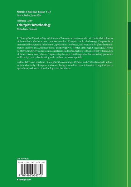 Authoritative and practical, Chloroplast Biotechnology: Methods and Protocols seek to aid scientists who study chloroplast molecular biology as well as those interested in applications in agriculture, industrial biotechnology and healthcare.