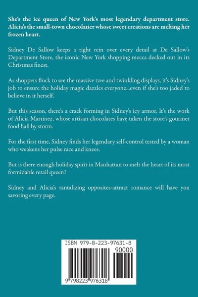She's the ice queen of New York's most legendary department store. Alicia's the small-town chocolatier whose sweet creations are melting her frozen heart. Sidney De Sallow keeps a tight rein over every detail at De Sallow's Department Store, the iconic New York shopping mecca decked out in its Christmas finest. As shoppers flock to see the massive tree and twinkling displays, it's Sidney's job to ensure the holiday magic dazzles everyone...even if she's too jaded to believe in it herself. But this season, there's a crack forming in Sidney's icy armor. It's the work of Alicia Martinez, whose artisan chocolates have taken the store's gourmet food hall by storm. For the first time, Sidney finds her legendary self-control tested by a woman who weakens her pulse race and knees. But is there enough holiday spirit in Manhattan to melt the heart of its most formidable retail queen? Sidney and Alicia's tantalizing opposites-attract romance will have you savoring every page.