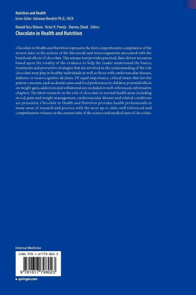 "This comprehensive scholarly focus on the health impacts and magnetic appeal of chocolate ... . Chocolate in Health and Nutrition is a valuable, one of its kind new text that evaluates the current evidence about a host of potential clinical benefits of chocolate consumption as well as potential risks it may pose to health. It will serve as an essential reference to clinicians, researchers and the lay audience with an interest in the properties and nutritional benefits of chocolate." (Dorothea Bedigian, Economic Botany, Vol. 67, 2013)