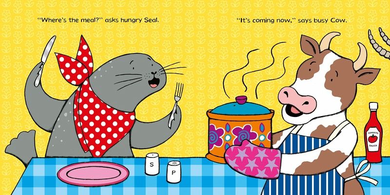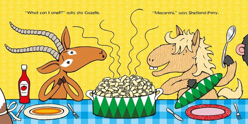 Join the fun of Toddler Time! Chocolate Mousse for Greedy Goose is a wonderful dinner time story from Julia Donaldson, author of The Gruffalo, and Nick Sharratt. With a FREE audio reading! Duck won't eat his carrots. Moth's eating the cloth, and Sheep would rather sleep than wash the dishes. Thank goodness some of the animals know how to behave. Even the smallest toddler will enjoy the wonderfully silly animal antics in this book - you've never been to a dinner party like it! In sturdy board book format, Chocolate Mousse for Greedy Goose is perfect for younger readers and ideal for reading out loud together! Julia Donaldson's charming story and Nick Sharratt's mischievous and funny illustrations make this bright and playful book a sure winner. Look out for other Toddler Time stories: Animal Music, Hippo Has a Hat, and Goat Goes to Nursery.