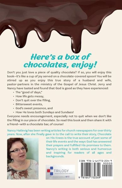 Here's a box of chocolates, enjoy! Don’t you just love a piece of quality chocolate? If so, you will enjoy this book—it’s like a cup of joy served on a chocolate-covered spoon! You will be stirred up as you enjoy this true story of a husband and wife, pastor-partners in the ministry of the Gospel of Jesus Christ. Jerry and Nancy have tasted and found that God is good as they have experienced: • The "good ol’ days," • How life gets messy, • Don’t quit over the filling, • Bittersweet events, • God’s sweet presence, and • How He loves both Sundays and Sundaes! Everyone needs encouragement, especially not to quit when we don’t like the filling in our piece of chocolate. So read this book and then share it with a friend—with a chocolate bar, of course!