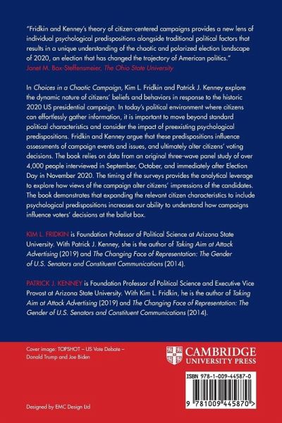 Examines the historic 2020 presidential election to explore citizens' dynamic responses to different elements of the campaign. Develops the citizen-centered theory of campaigns, arguing people's psychological predispositions and political predilections affect assessments of campaign events and issues, ultimately altering citizens' voting decisions.