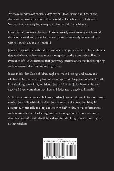 We make hundreds of choices a day. We talk ourselves into things, and afterward we justify our choices. We make choices without knowing all the facts or having the correct facts, or we are emotionally influenced in a situation. James the apostle is convinced that too many people make bad choices because they start with a wrong view of life. Instead of living in blessing and peace and wholeness, people are living in discouragement, disappointment, and death. Judas was one of James’ good friend. Judas shows us the horror of living in deception, continually making choices with half-truths, partial information, and the world’s view of what is going on. Choices is a pastoral commentary on this often misunderstood book of the Bible. It offers a close look at what it means to make good choices and what blessings come from wise choices that lift us out of standard, deceptive religious thinking. The world gives us lies, and James wants to give us wisdom so we can make choices that lead to blessing.