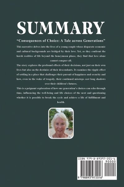 "Consequences of Choice: A Tale across Generations" This narrative delves into the lives of a young couple whose disparate economic and cultural backgrounds are bridged by their love. Yet, as they confront the harsh realities of life beyond the honeymoon phase, they find that love alone cannot conquer all. The story explores the profound effects of their decisions, not just on their own lives but also on the destinies of their descendants. It examines the ripple effect of settling in a place that challenges their pursuit of happiness and security and how, even in the wake of tragedy, their continued missteps cast long shadows over their children's futures. This is a poignant exploration of how one generation's choices can echo through time, influencing the well-being and life choices of the next and questioning whether it is possible to break the cycle and achieve a life of fulfillment and health.