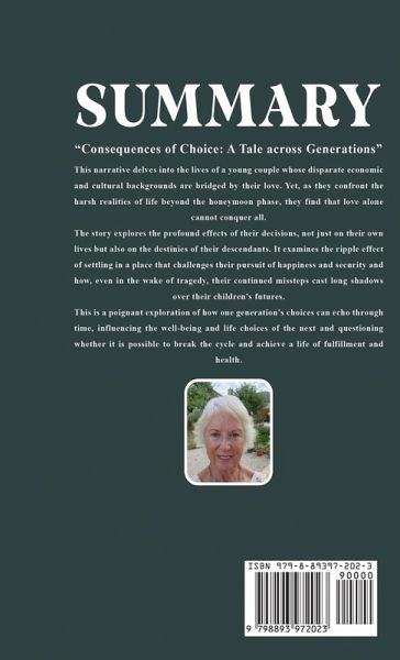 "Consequences of Choice: A Tale across Generations" This narrative delves into the lives of a young couple whose disparate economic and cultural backgrounds are bridged by their love. Yet, as they confront the harsh realities of life beyond the honeymoon phase, they find that love alone cannot conquer all. The story explores the profound effects of their decisions, not just on their own lives but also on the destinies of their descendants. It examines the ripple effect of settling in a place that challenges their pursuit of happiness and security and how, even in the wake of tragedy, their continued missteps cast long shadows over their children's futures. This is a poignant exploration of how one generation's choices can echo through time, influencing the well-being and life choices of the next and questioning whether it is possible to break the cycle and achieve a life of fulfillment and health.
