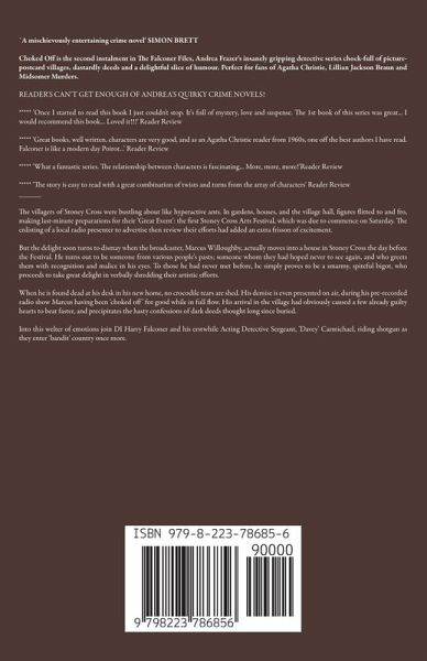 `A mischievously entertaining crime novel' SIMON BRETT Choked Off is the second instalment in The Falconer Files, Andrea Frazer's insanely gripping detective series chock-full of picture-postcard villages, dastardly deeds and a delightful slice of humour. Perfect for fans of Agatha Christie, Lillian Jackson Braun and Midsomer Murders. READER'S CAN'T GET ENOUGH OF ANDREA'S QUIRKY CRIME NOVELS! ***** 'Once I started to read this book I just couldn't stop. It's full of mystery, love and suspense. The 1st book of this series was great... I would recommend this book... Loved it!!!' Reader Review ***** 'Great books, well written, characters are very good, and as an Agatha Christie reader from 1960s, one off the best authors I have read. Falconer is like a modern day Poirot...' Reader Review ***** 'What a fantastic series. The relationship between characters is fascinating... More, more, more!'Reader Review ***** 'The story is easy to read with a great combination of twists and turns from the array of characters' Reader Review ______ The villagers of Stoney Cross were bustling about like hyperactive ants. In gardens, houses, and the village hall, figures flitted to and fro, making last-minute preparations for their 'Great Event': the first Stoney Cross Arts Festival, which was due to commence on Saturday. The enlisting of a local radio presenter to advertise then review their efforts had added an extra frisson of excitement. But the delight soon turns to dismay when the broadcaster, Marcus Willoughby, actually moves into a house in Stoney Cross the day before the Festival. He turns out to be someone from various people's pasts; someone whom they had hoped never to see again, and who greets them with recognition and malice in his eyes. To those he had never met before, he simply proves to be a smarmy, spiteful bigot, who proceeds to take great delight in verbally shredding their artistic efforts. When he is found dead at his desk in his new home, no crocodile tears are shed. His demise is even presented on air, during his pre-recorded radio show Marcus having been 'choked off' for good while in full flow. His arrival in the village had obviously caused a few already guilty hearts to beat faster, and precipitates the hasty confessions of dark deeds thought long since buried. Into this welter of emotions join DI Harry Falconer and his erstwhile Acting Detective Sergeant, 'Davey' Carmichael, riding shotgun as they enter 'bandit' country once more.