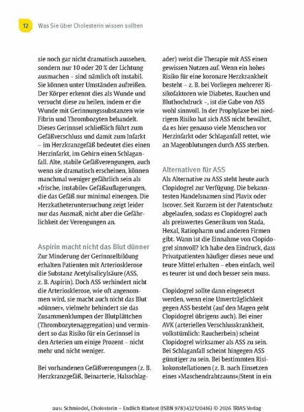 Anhand von Checklisten stellen Sie fest, ob Cholesterin wirklich ein Risiko für Sie darstellt und welche Faktoren Ihr Risiko für Arteriosklerose und Herzinfarkt beeinflussen. Und für den Arztbesuch hält das Buch einen Spickzettel mit allen wichtigen Punkten parat.