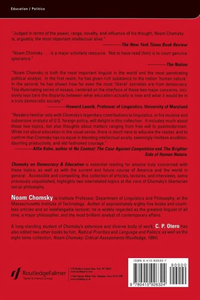 Engaging and incisive, Chomsky on Democracy and Education is the first collection of writings, talks, and interviews, some previously unpublished, of his views on language, power, policy, and method in education.