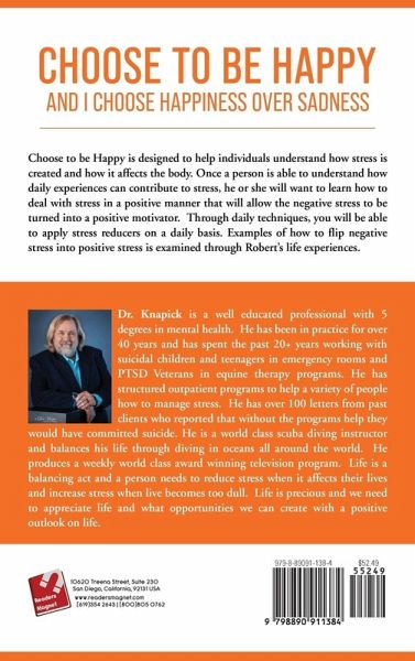 Choose to be Happy is designed to help individuals understand how stress is created and how it affects the body. Once a person is able to understand how daily experiences can contribute to stress, he or she will want to learn how to deal with stress in a positive manner that will allow the negative stress to be turned into a positive motivator. Through daily techniques, you will be able to apply stress reducers on a datily basis. Examples of how to flip negative stress into positive stress is examined through Robert's life experiences.