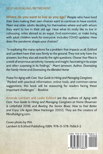 Advance Praise for Choose Your Place "In exploring the many options for a problem that impacts us all, Eckford and Lambert have their ears firmly to the ground." Marni Jameson, Author, Downsizing the Family Home and Downsizing the Blended Home Where do you want to live as you age? People who have lived their lives making their own choices want to continue to have control. In Choose Your Place: Rethinking Home as You Age, you will meet real older adults deciding for themselves where and with whom the want to live their old age. Hear what it's really like to live in cohousing, retire abroad as an expat, find roommates, or make living with adult children work for everyone. Includes COVID-19 updates: How does the pandemic shape your choices? Excellent reading for those who are pre-retirement, early retirement and for families to use as a launching point for effective, future-focused discussion. A tool for empowered aging! Editorial Reviews "In exploring the many options for a problem that impacts us all, Eckford and Lambert have their ears firmly to the ground. They not only have the answers, but they also ask exactly the right questions. Choose Your Place is a work of enormous sensitivity, honesty and insight, fascinating in its scope and often surprising in its findings." Marni Jameson, Author, Downsizing the Family Home and Downsizing the Blended Home Praise for Aging with Care: Your Guide to Hiring and Managing Caregivers at Home: "Most seniors want to age in their homes. But what if simple daily tasks are becoming too difficult? What if family members aren't able to give round-the clock care? Lambert and Eckford, both experienced in geriatric care, do a thorough exploration of the challenges of providing home care. Packed with practical information, online tools, and common-sense suggestions, this book will be reassuring for readers facing these important challenges."