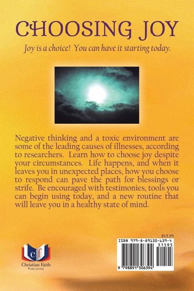 Joy is a choice! You can have it starting today. Negative thinking and a toxic environment are some of the leading causes of illnesses, according to researchers. Learn how to choose joy despite your circumstances. Life happens, and when it leaves you in unexpected places, how you choose to respond can pave the path for blessings or strife. Be encouraged with testimonies, tools you can begin using today, and a new routine that will leave you in a healthy state of mind.