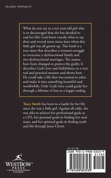 What do you say to a ten-year-old girl who is so discouraged that she has decided to end her life? God knew exactly what to say then and several more times later when this little girl was all grown up. This book is a true story that describes a woman's struggle to overcome a dysfunctional family and two dysfunctional marriages. The names have been changed to protect the guilty. It describes God's love and faithfulness in a very real and practical manner and shows how He could take a life that was turned to ashes and make it into something beautiful and worthwhile. Only God's love could guide her through a lifetime of loss to a happy ending.