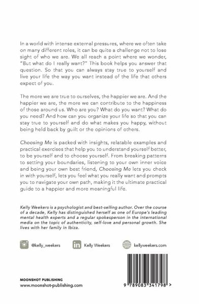 A Psychologist's manual for the greatest act of self-love: to choose one's self. CHOOSING ME is packed full of easy to digest tools and prompts to make the reader pause, reflect and self-enquire so they can move forward with clarity. In a world with intense external pressures, where we often take on many different roles, it can be quite a challenge not to get ahead of ourselves. We all reach a point where we wonder, "But what do I really want?" This book helps you answer that question. So that you can always stay true to yourself and live your life the way you want instead of what others expect of you. The more we are true to ourselves, the happier we are. And the happier we are, the more we can contribute to the happiness of those around us. Who are you? What do you want? What do you need? And how can you organize your life so that you can stay true to yourself and do what makes you happy, without being held back by guilt or the opinions of others. CHOOSING ME is packed with insights, relatable examples and practical exercises that help you to understand yourself better, to be yourself and to choose yourself. From breaking patterns to upholding your boundaries, listening to your own inner voice and being your own best friend, CHOOSING ME lets you check in with yourself, lets you feel what you really want and prompts you to set your own path, making it the ultimate practical guide to a happier and more meaningful life.