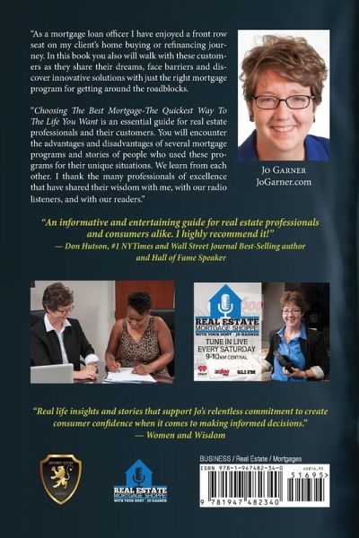"As a mortgage loan officer I have enjoyed a front row seat on my client's home buying or refinancing journey. In this book you also will walk with these customers as they share their dreams, face barriers and discover innovative solutions with just the right mortgage program for getting around the roadblocks. "Choosing The Best Mortgage-The Quickest Way To The Life You Want is an essential guide for real estate professionals and their customers. You will encounter the advantages and disadvantages of several mortgage programs and stories of people who used these programs for their unique situations. We learn from each other. I thank the many professionals of excellence that have shared their wisdom with me, with our radio listeners, and with our readers."