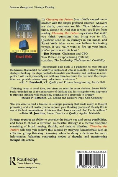 Strategy requires an ability to conceive the future, see and create possibilities, and focus to choose a direction. Successful strategy is a mental discipline consisting of broad ranging, flexible, and creative thinking. Choosing the Future will help you achieve this success by studying fundamentals such as effective group thinking, knowing when to delay a decision for more information, balancing contrasting modes of thought, and transforming thought into action. Using a cycle to show the relationship among different strategic thinking tools, Choosing the Future gives you guidance to respond to these basic questions:What seems to be happening?What possibilities do we face?What are we going to do about it?Choosing the Future will help you advance your thinking skills. Rather than telling you what to do, it teaches you to use your business knowledge to discover your own ideas and strategic direction.Stuart Wells is Professor of Organization and Management at San Jose State University, where he serves as Director of the Center for Global Competitiveness and as Director of the Small Business Institute. As founder of the Leading Edge Consulting Group and co-founder of Corporate Wisdom, he has worked on leadership development and strategy issues with such major corporations as Clorox, Dupont, PepsiCo, and Proctor and Gamble. He is the author of several books, including From Sage to Artisan: The Nine Roles of the Value-Driven Leader.
