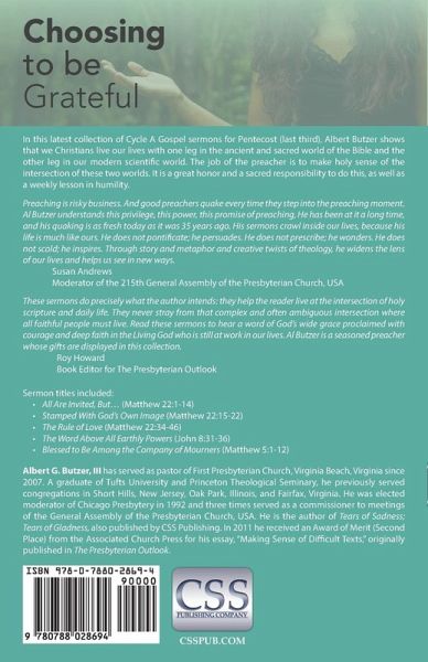 In this latest collection of Cycle A gospel sermons for Pentecost (last third), Albert Butzer shows that we Christians live our lives with one leg in the ancient and sacred world of the Bible and the other leg in our modern, scientific world. The job of the preacher is to make holy sense of the intersection of these two worlds. It is a great honor and a sacred responsibility to do this, as well as a weekly lesson in humility. Preaching is risky business. And good preachers quake every time they step into the preaching moment. Al Butzer understands this privilege, this power, this promise of preaching, he has been at it a long time, and his quaking is as fresh today as it was 35 years ago. His sermons crawl inside our lives, because his life is much like ours. He does not pontificate; he persuades. He does not prescribe; he wonders. He does not scold; he inspires. Through story and metaphor and creative twists of theology, he widens the lens of our lives and helps us see in new ways. Susan Andrews Moderator of the 215th General Assembly of the Presbyterian Church, USA These sermons do precisely what the author intends: They help the reader live at the intersection of holy scripture and daily life. They never stray from that complex and often ambiguous intersection where all faithful people must live. Read these sermons to hear a word of God's wide grace proclaimed with courage and deep faith in the living God who is still at work in our lives. Al Butzer is a seasoned preacher whose gifts are displayed in this collection. Roy Howard Book Editor for The Presbyterian Outlook Sermon titles included: All Are Invited, But… (Matthew 22:1-14) Stamped With God's Own Image (Matthew 22:15-22) The Rule of Love (Matthew 22:34-46) The Word Above All Earthly Powers (John 8:31-36) Blessed to Be Among the Company of Mourners (Matthew 5:1-12) Albert G. Butzer, III has served as pastor of First Presbyterian Church, Virginia Beach, Virginia since 2007. A graduate of Tufts University and Princeton Theological Seminary, he previously served congregations in Short Hills, New Jersey; Oak Park, Illinois; and Fairfax, Virginia. He was elected moderator of Chicago Presbytery in 1992 and three times served as a commissioner to meetings of the General Assembly of the Presbyterian Church, USA. He is the author of Tears of Sadness; Tears of Gladness also published by CSS Publishing. In 2011 he received an Award of Merit (Second Place) from the Associated Church Press for his essay, "Making Sense of Difficult Texts," originally published in The Presbyterian Outlook.