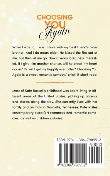 When I was 16, I was in love with my best friend's older brother. And I do mean older. He kissed the fire out of me, but then let me go. Now 8 years later, he's interested. If I give him another chance, will he break my heart again? Or will I get my happily ever after? Choosing You Again is a sweet romantic comedy/chick lit novella: 17,500 words.